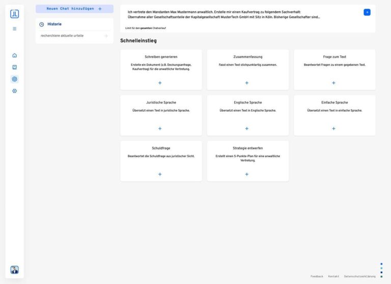 Dafür beinhaltet die Anwalts-KI verschiedene Funktionen: